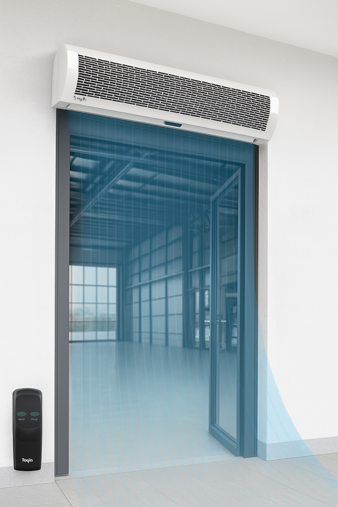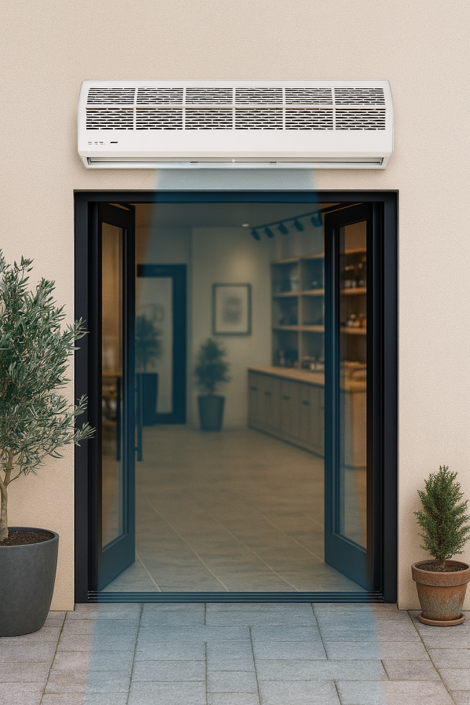 A cortina de ar é um equipamento projetado para impedir a troca de temperatura entre ambientes, criando um fluxo contínuo de ar que atua como barreira contra o calor, o frio, poeira, fumaça, odores, insetos e outros agentes externos.